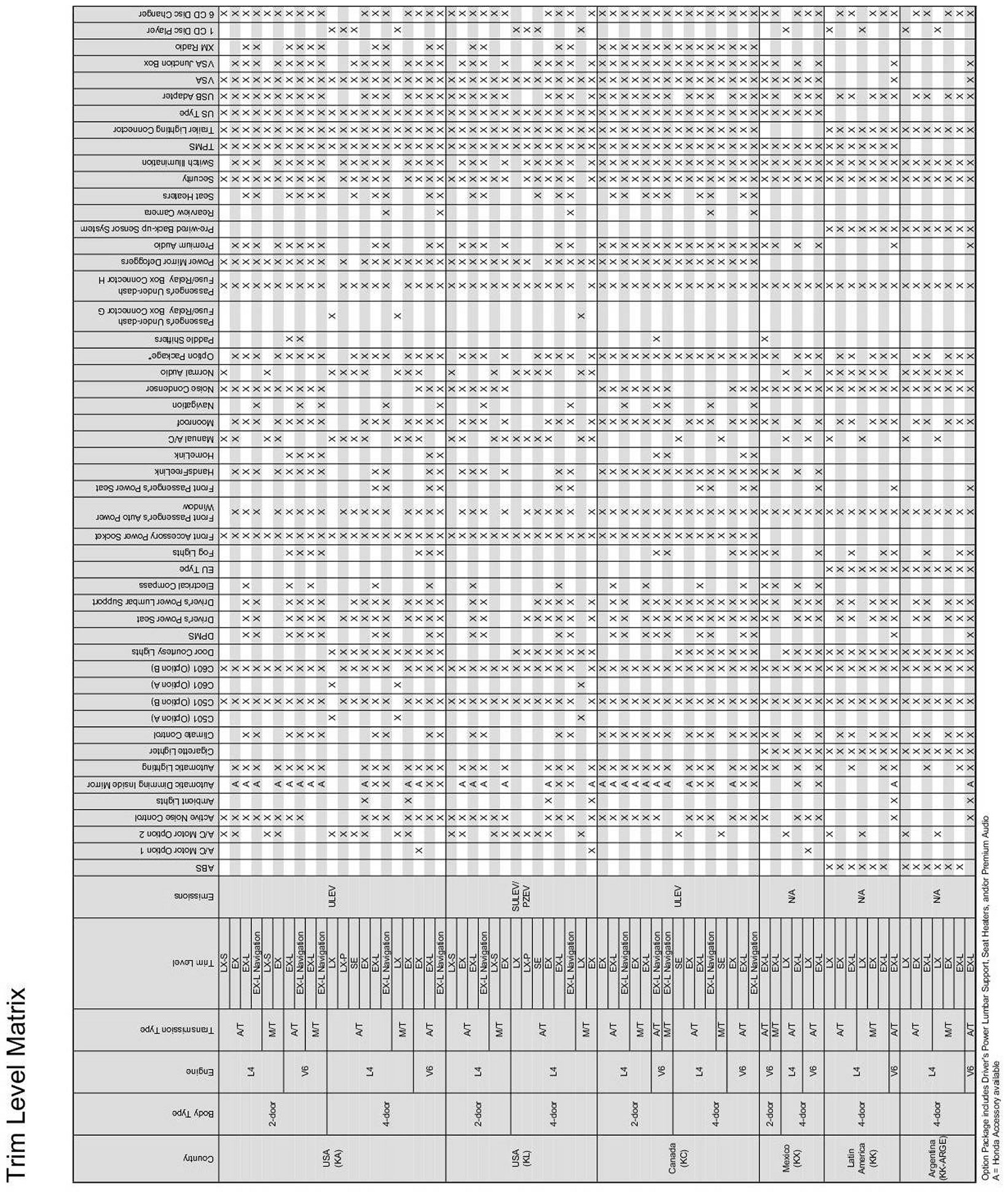 A few models are getting the USB adapter, and you're simply going to indicate which ones in your ETM by placing a dot in the applicable box in the Trim Level Matrix.