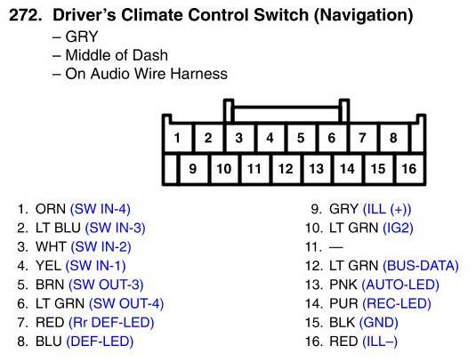 Driver's Climate Control Switch Connector View (Navigation)
