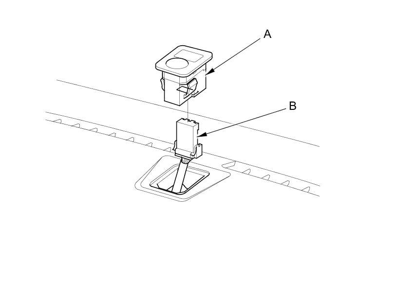 1. Pull out the sunlight sensor (A) from the dashboard, and disconnect the connector (B), and remove the sunlight sensor. Be careful not to damage the sensor and the dashboard.