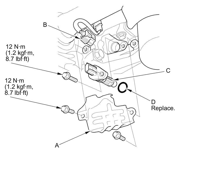 5. Install the parts in the reverse order of removal with a new O-ring (D).