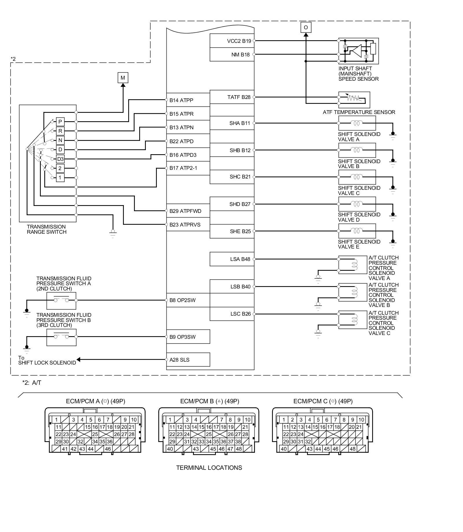 ECM/PCM Inputs and Outputs at ECM/PCM Connector B (triangle) (49P)