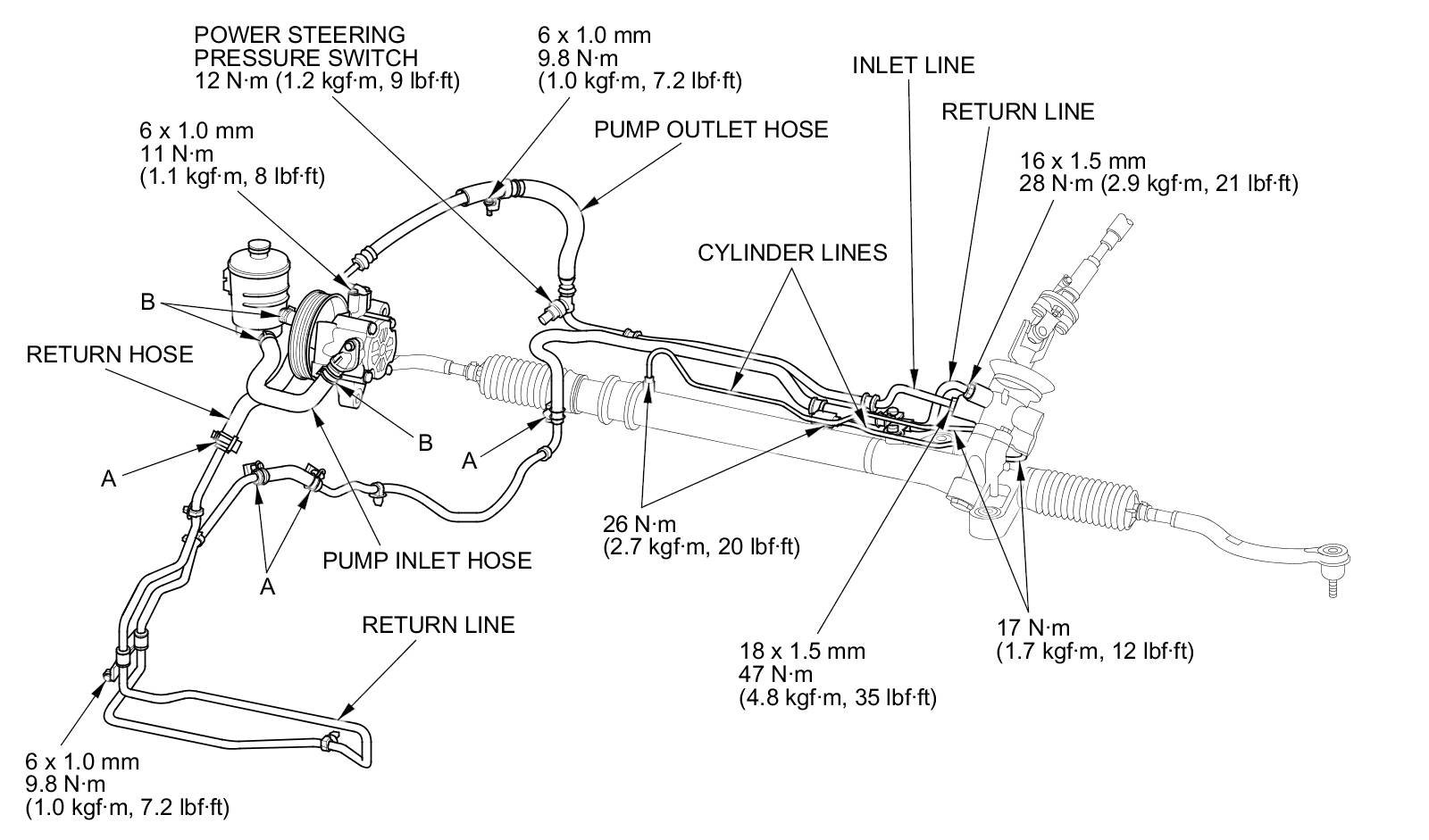 Hydraulic Power Steering Hose, Line, and Pressure Switch Replacement