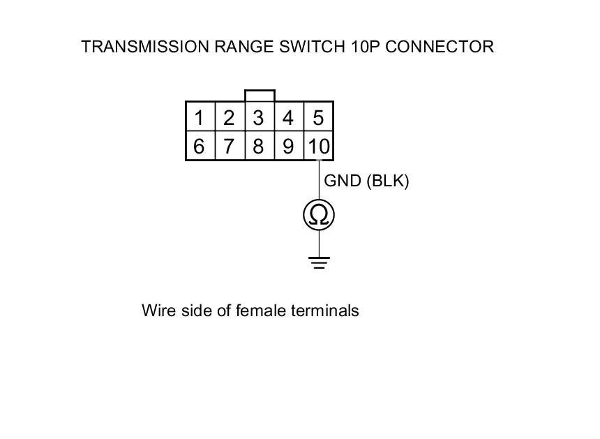 23. Check for continuity between transmission range switch 10P connector terminal No. 10 and body ground.