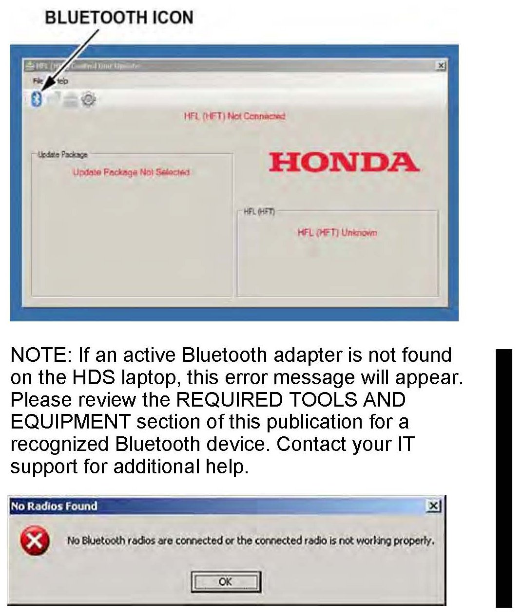 9. In the HFL update tool, click on the Bluetooth icon in the upper left corner of the screen to pair with the vehicle's HFL.