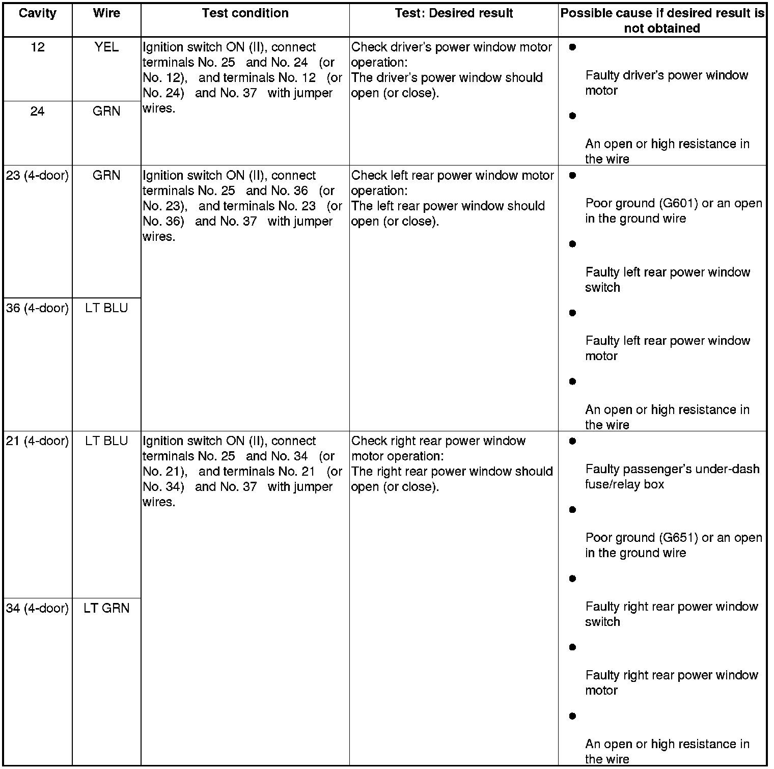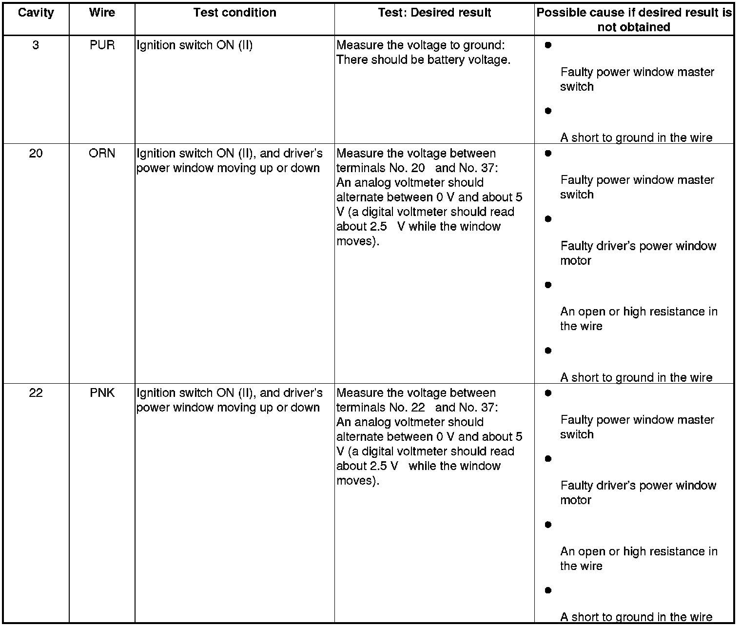 - If all the input tests prove OK, the door multiplex control unit is faulty; replace the power window master switch.