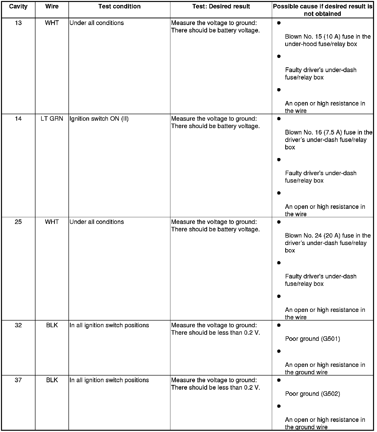 NOTE: Before testing, troubleshoot the multiplex integrated control unit first, using B-CAN System Diagnosis Test Mode A.