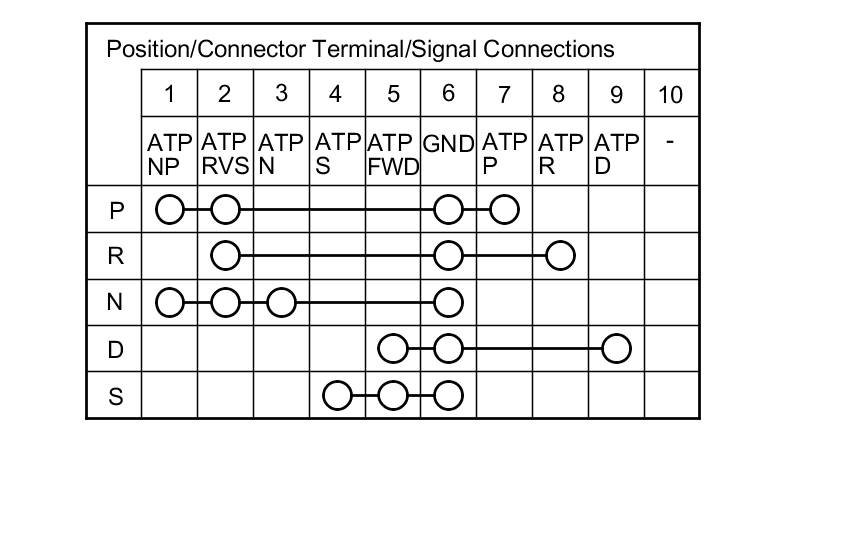6. If the transmission range switch test results are OK, the transmission range switch test is finished; go to step 7. If there is no continuity between any terminals, check that the transmission range switch installation. If the switch is installed correctly, replace the switch Service and Repair.