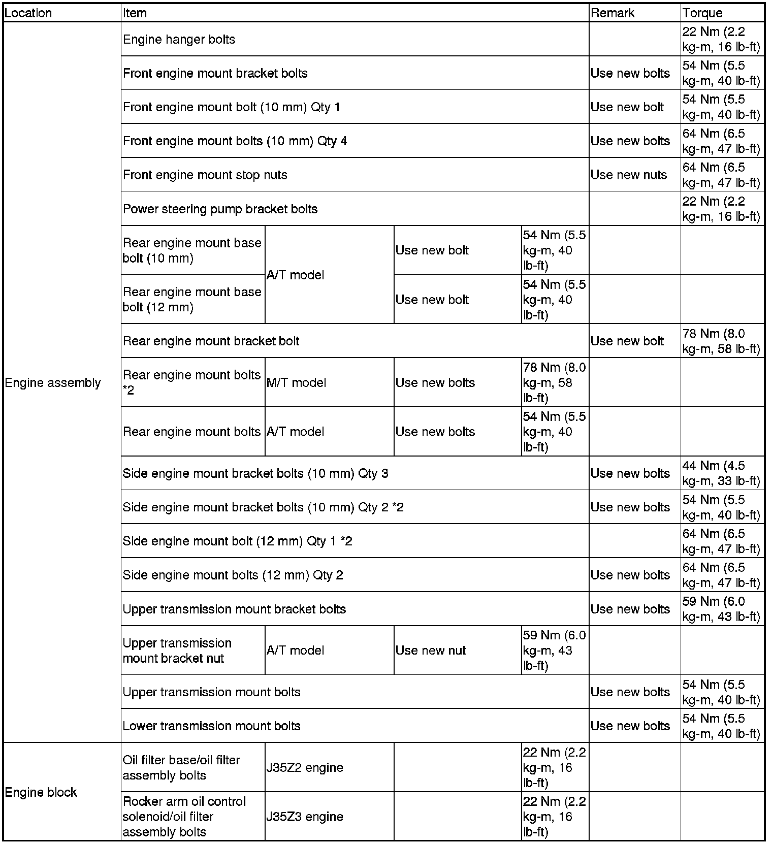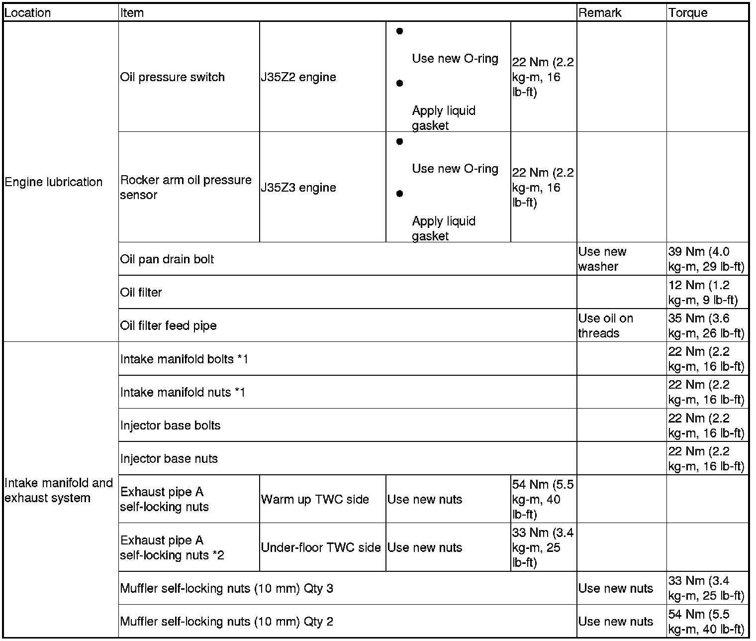 *2: Follow the S/M procedures closely for torque, sequence, and special steps.