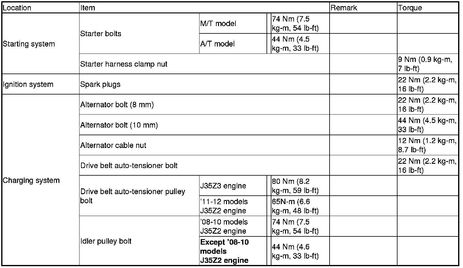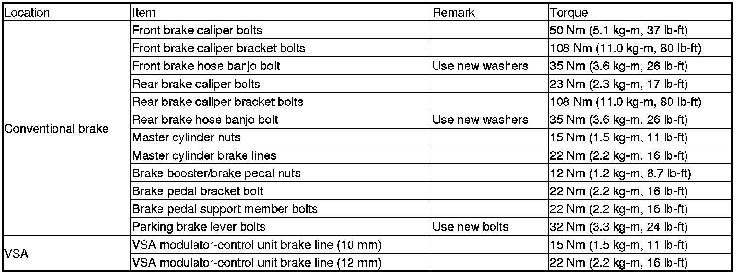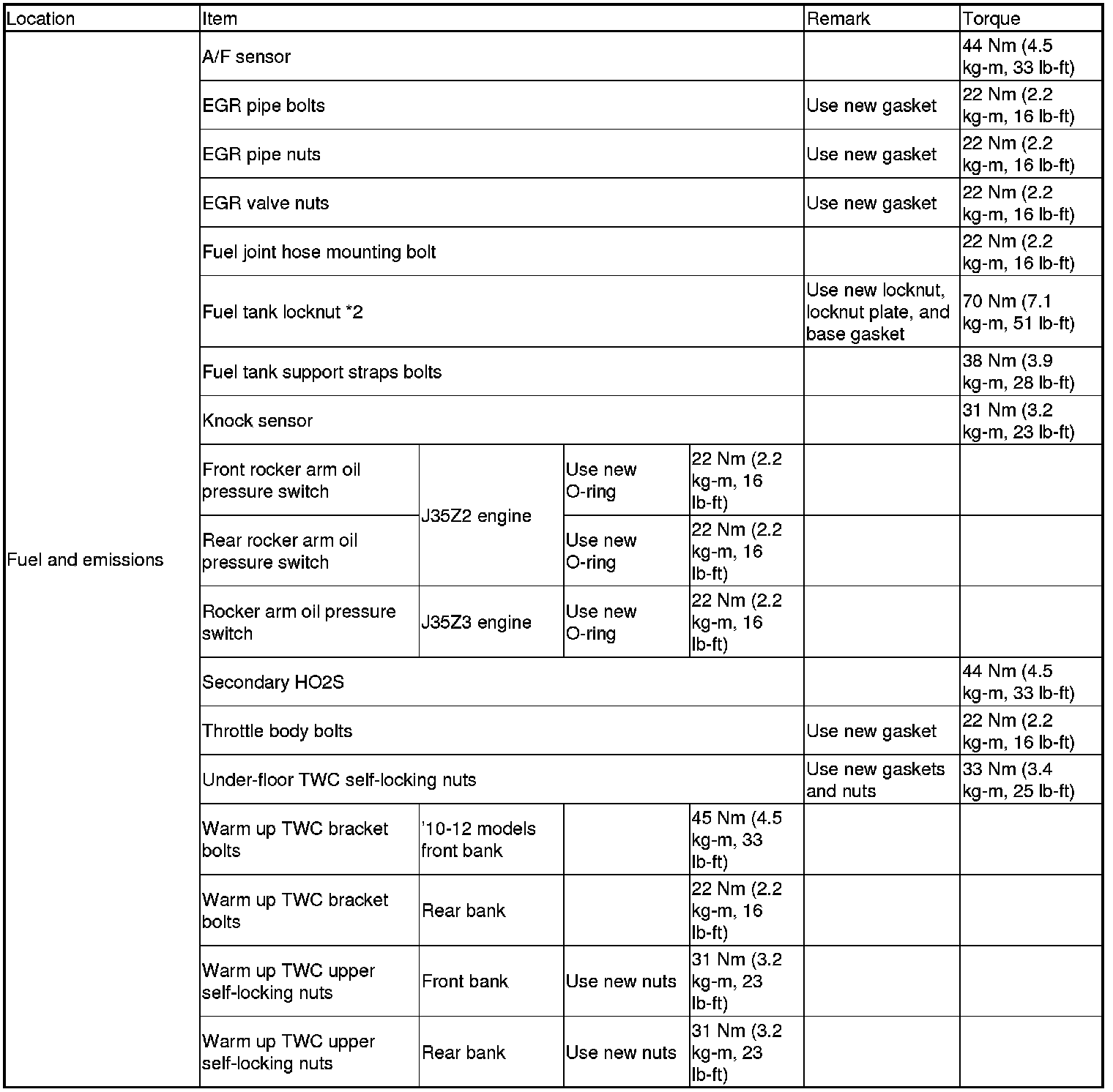 Torque Specifications