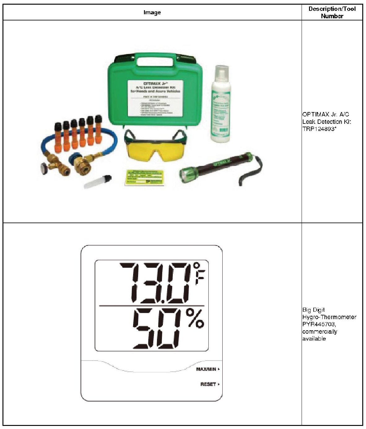 * Halogen leak detectors are sensitive to chemicals: windshield washing solutions, solvents/cleaners, and some vehicle adhesives. Keep these chemicals out of the area when doing leak detection.