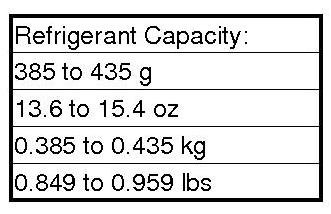 1. Charge the system with the specified amount of R-134a refrigerant. Do not overcharge the system; the A/C compressor will be damaged.