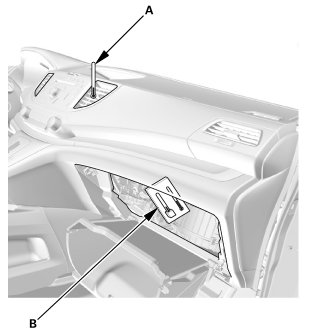 1. Install the glove box (A). Make sure the glove box stops (B) snap into place securely.