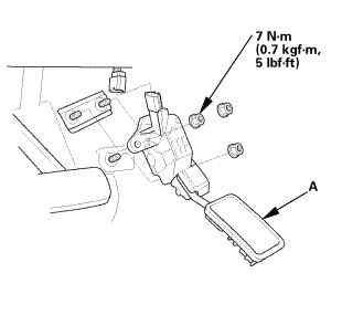 1. Install the accelerator pedal module (A).