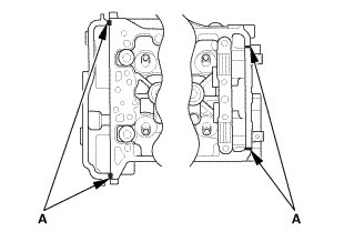6. Apply liquid gasket, (P/N 08718-0004 or 08718-0009) on the chain case and the No. 5 rocker shaft holder mating areas (A). Install the component within 5 minutes of applying the liquid gasket.