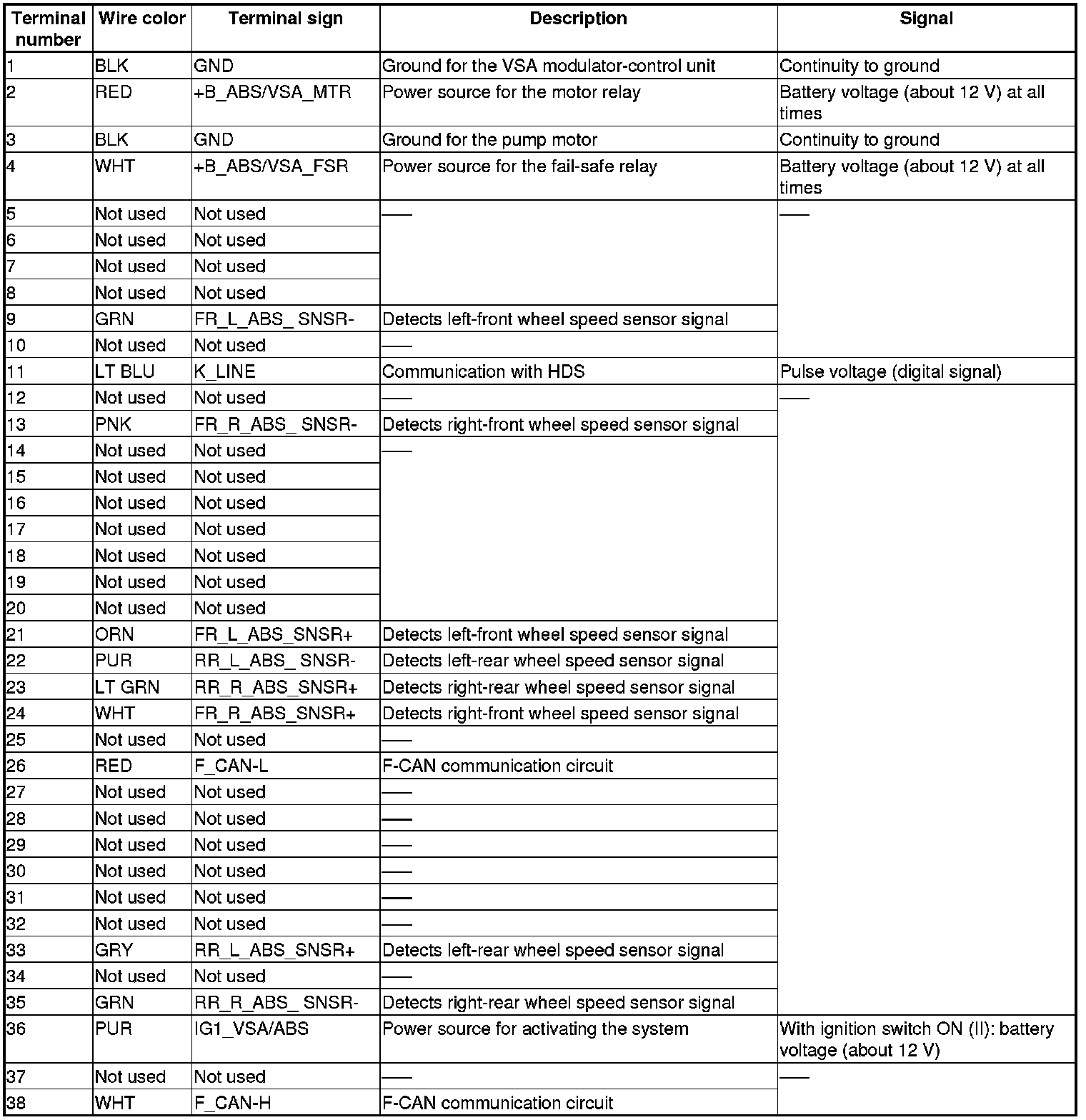 Inputs and Outputs for 38P Connector (Connector Disconnected)