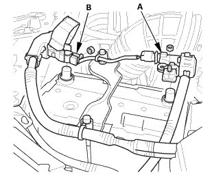 3. Connect the negative cable (B) to the battery.