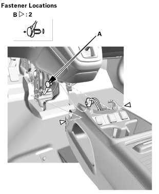 4. Remove the console box mat (A), then remove the bolts (B).