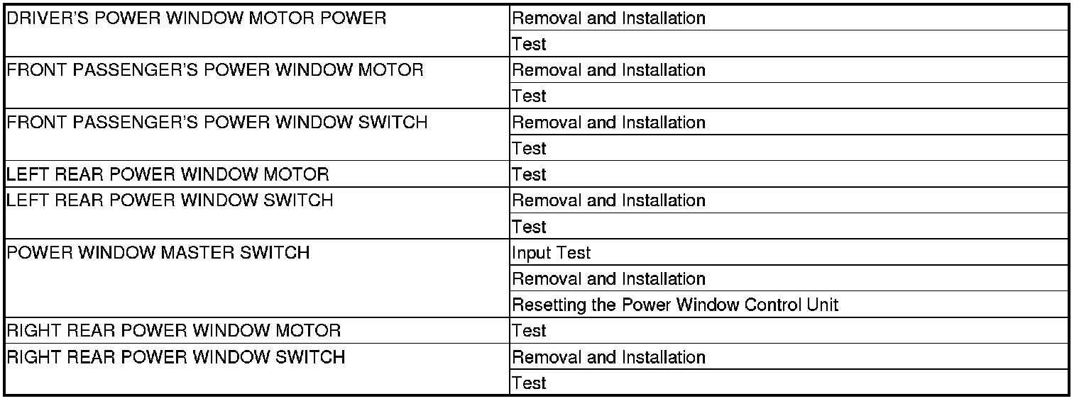 Power Windows Component Location Index