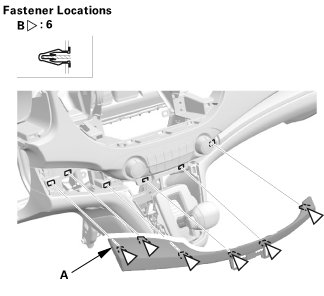 1. Carefully pry out the driver's inner dashboard trim panel (A) with the appropriate trim tool to detach the clips (B), then remove the driver's inner dashboard trim panel.
