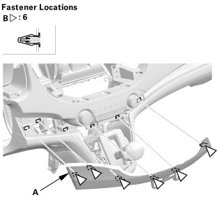 1. Install the driver's inner dashboard trim panel (A). Make sure the clips (B) snap into place securely.