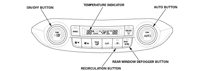 * "Lo" temperature setting will default to MAX COOL, VENT, and RECIRC (A/C on) or FRESH (A/C off).