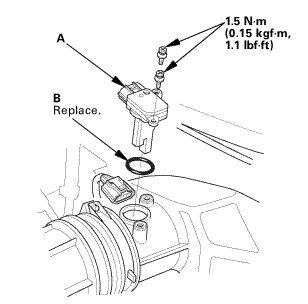 1. Install the MAF sensor/IAT sensor (A) with a new O-ring (B).