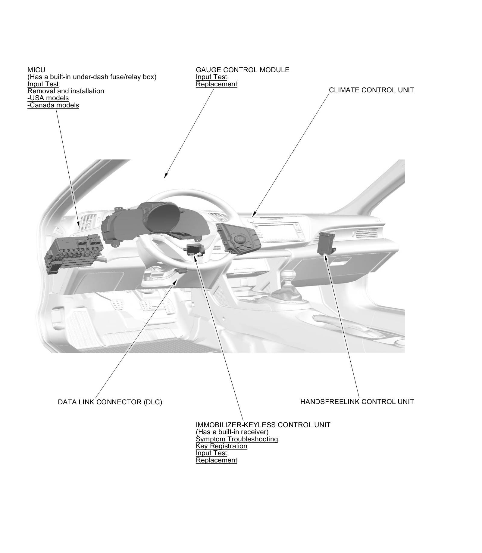 Multiplex Integrated Control System Component Location Index