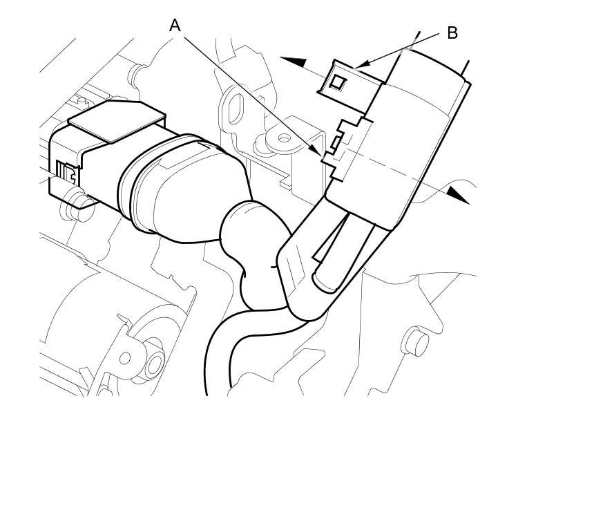 2. Remove the IMA motor power cable clamp (A) from the clamp bracket (B).
