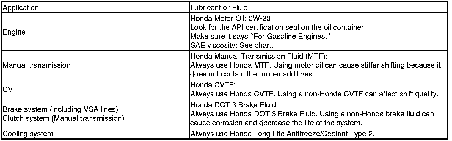 Home >> Honda >> 2012 >> CR-Z L4-1.5L Hybrid >> Repair and Diagnosis >> Specifications >> Fluid Type Specifications >> Fluids