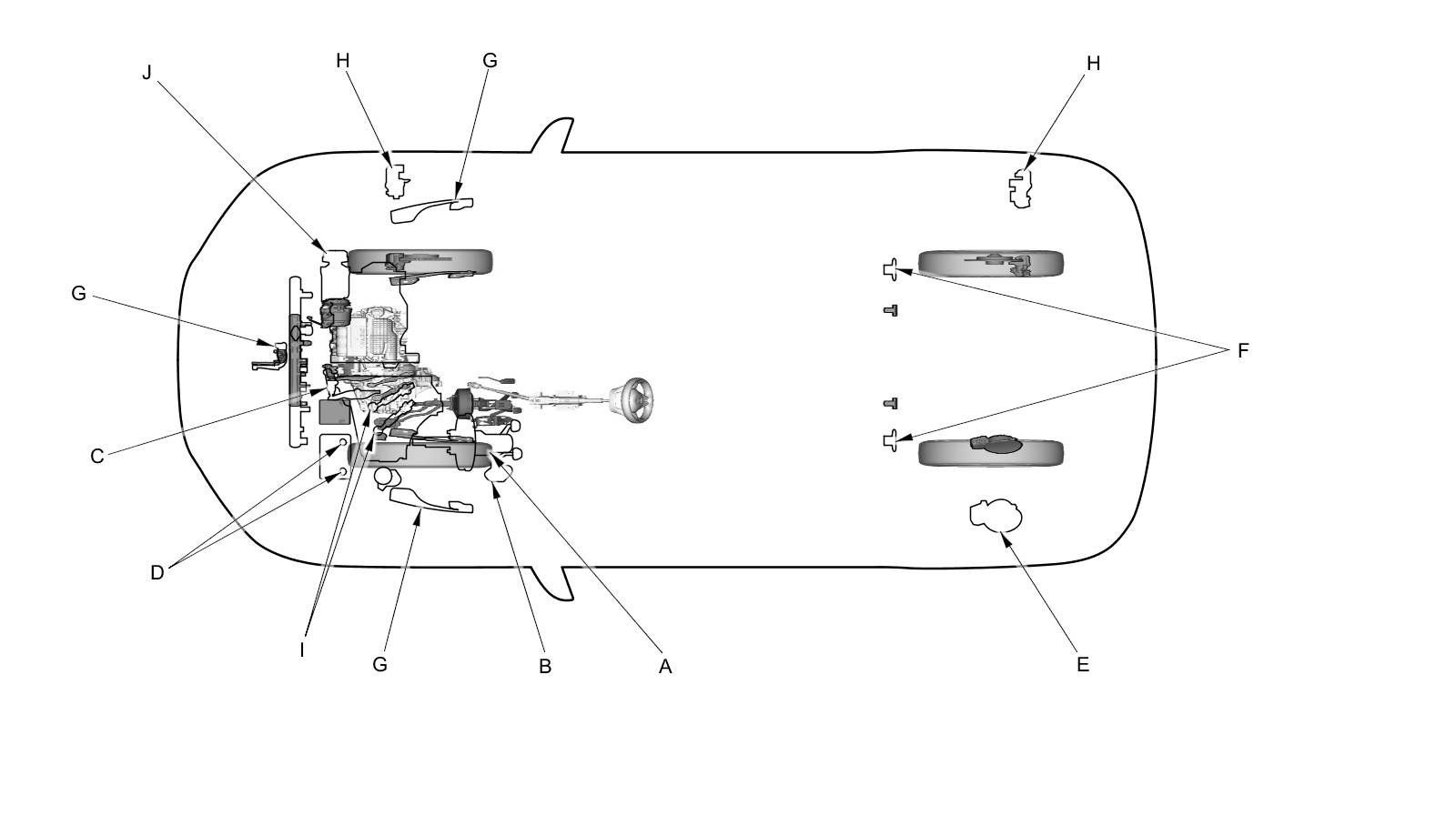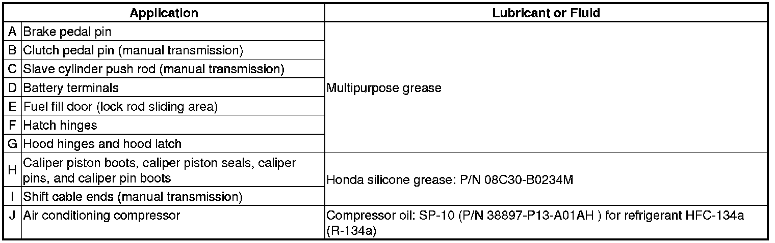 - Lubricate the following areas using the recommended lubricants and fluids.