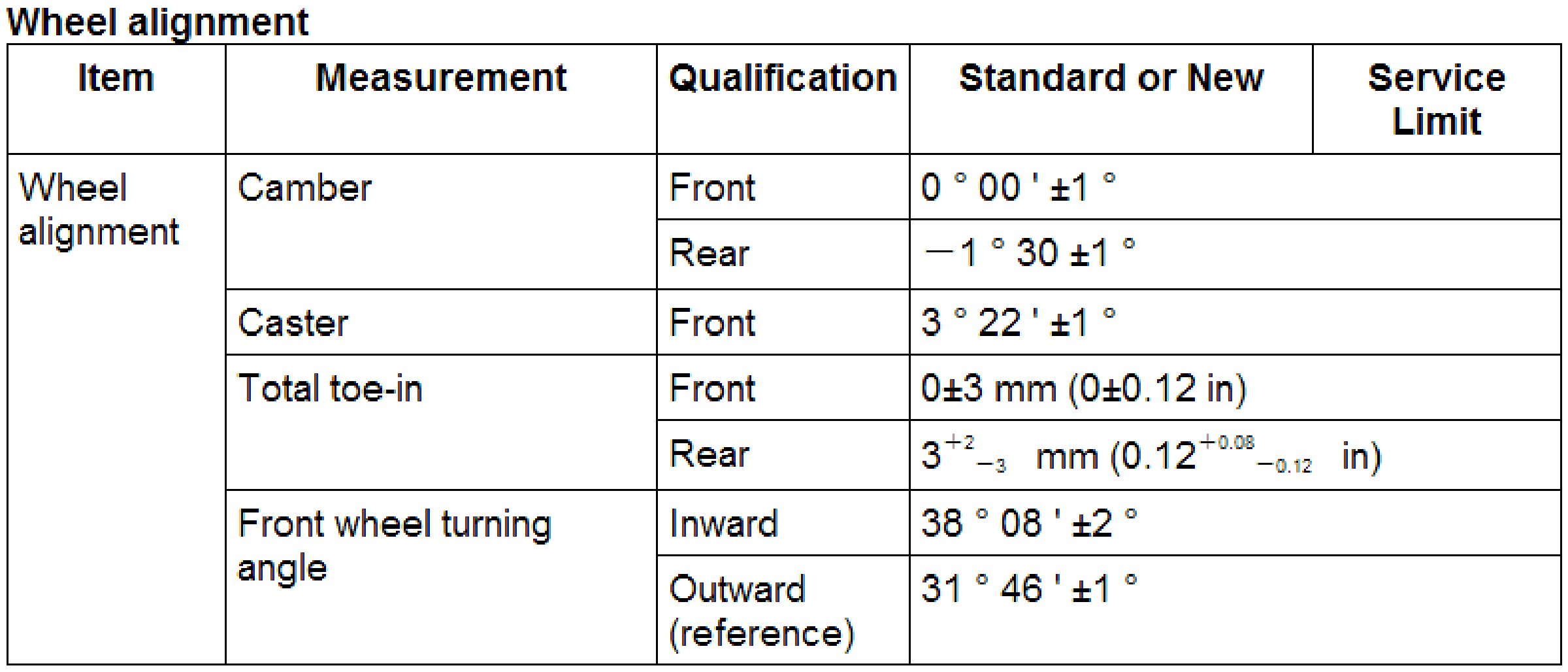 Wheel Alignment Specifications
