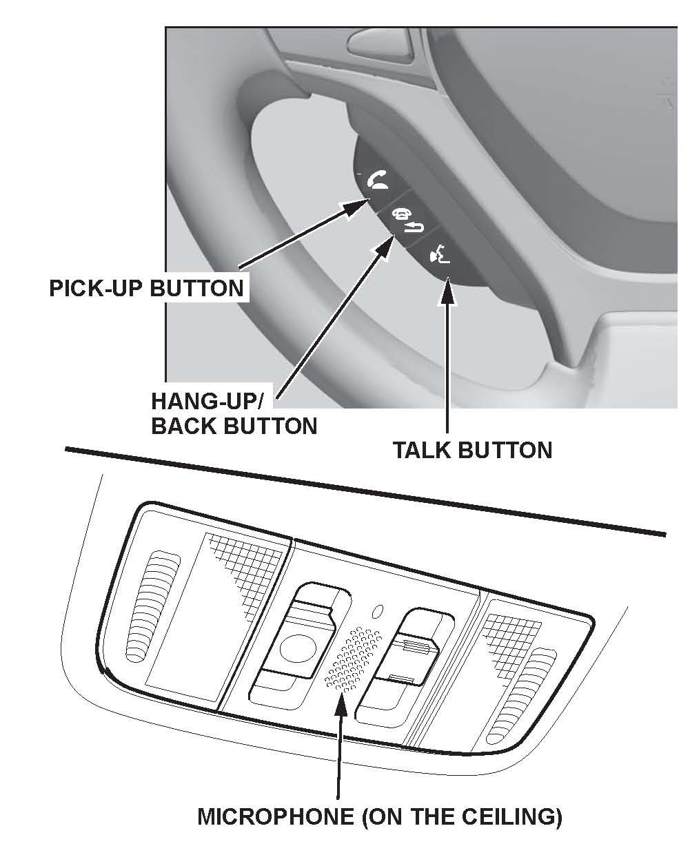 The navigation system features a voice control system that allows you to operate most of the navigation and audio controls with only your voice. To interact with the navigation system, use the TALK and HANG-UP/BACK buttons. The microphone is located on the ceiling. This is the primary way to give commands to the system.