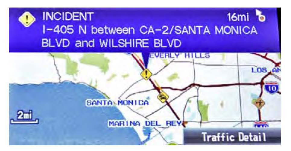 ^ Small diamond-shaped "traffic incident" icons may be shown. If so, scroll over an icon and press the ENTER button to see the details.