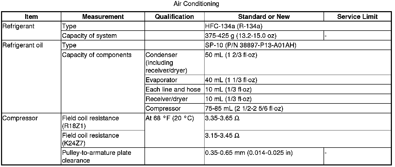 Refrigerant: Specifications