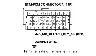 -NO- Check for poor connections or loose terminals at the A/C compressor clutch relay and the ECM/PCM. If the connections and terminals are OK, check the A/C compressor clutch relay. If needed, repair open in the A/C_MG_CLUTCH_RLY_CL- wire between the ECM/PCM (A12) and the A/C compressor clutch relay, or other parts in the A/C systems.