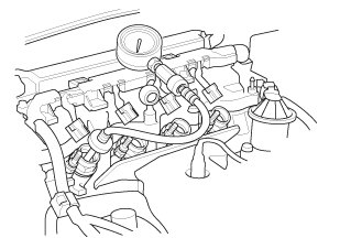 2. Step on the accelerator pedal to open the throttle fully, crank the engine with the starter motor, and measure the compression.