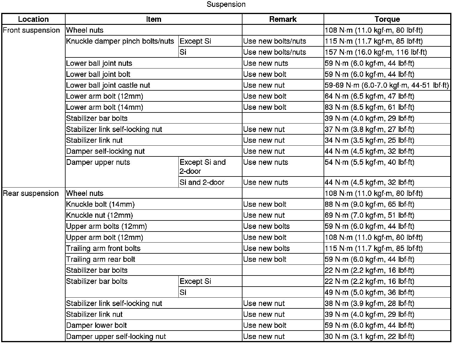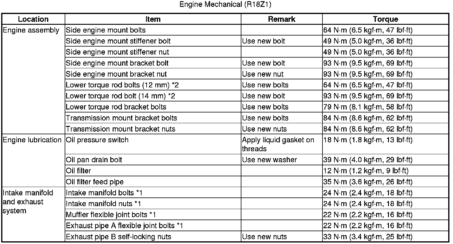 Home >> Honda >> 2012 >> Civic L4-1.8L >> Repair and Diagnosis >> Specifications >> Mechanical Specifications >> Torque Specifications
