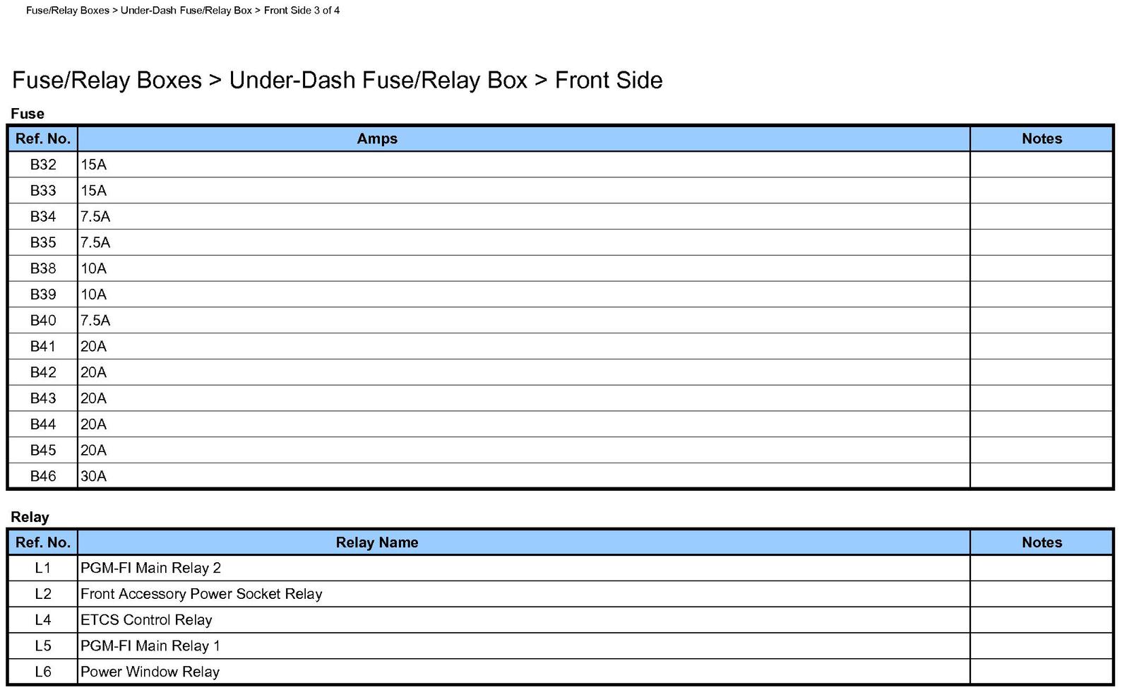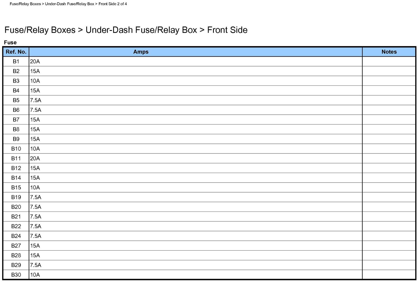 Fuse/Relay Boxes Locations Under-Dash Fuse/Relay Box - Front Side