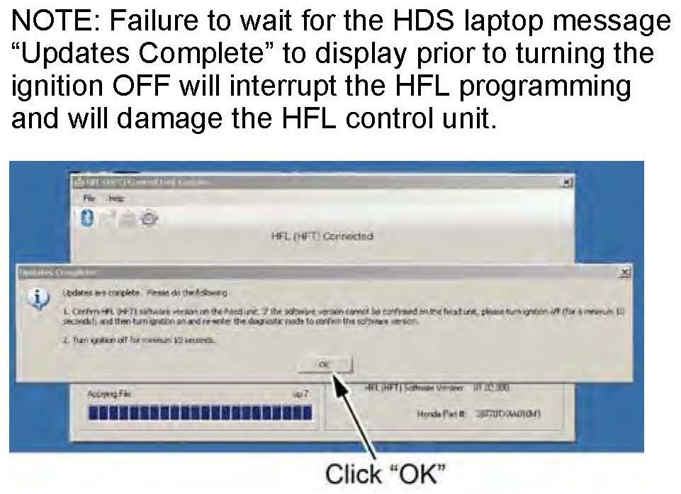 17. In the HFL update tool, click OK when the pop-up window indicates the reflash process is complete.