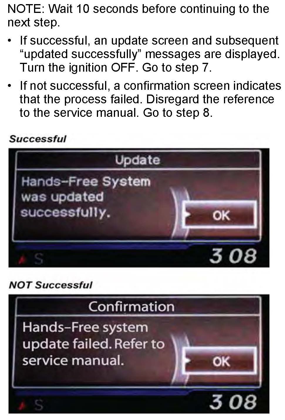 ^ If you see: "01.XX.XXX_(TO)_01.XX.XXX update," the PartNumberFix update is complete. You must now update the HFL control unit software. Go to HFL CONTROL UNIT UPDATE PROCEDURE - CR-V, Vehicles without Navigation.
