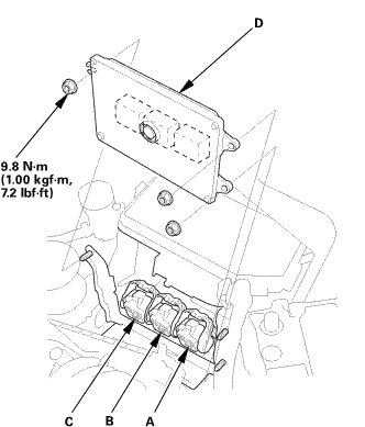 3. Remove the ECM (D).