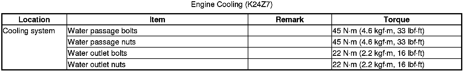 Home >> Honda >> 2012 >> Civic Si L4-2.4L >> Repair and Diagnosis >> Specifications >> Mechanical Specifications >> Cooling System >> System Specifications >> Torque Specifications