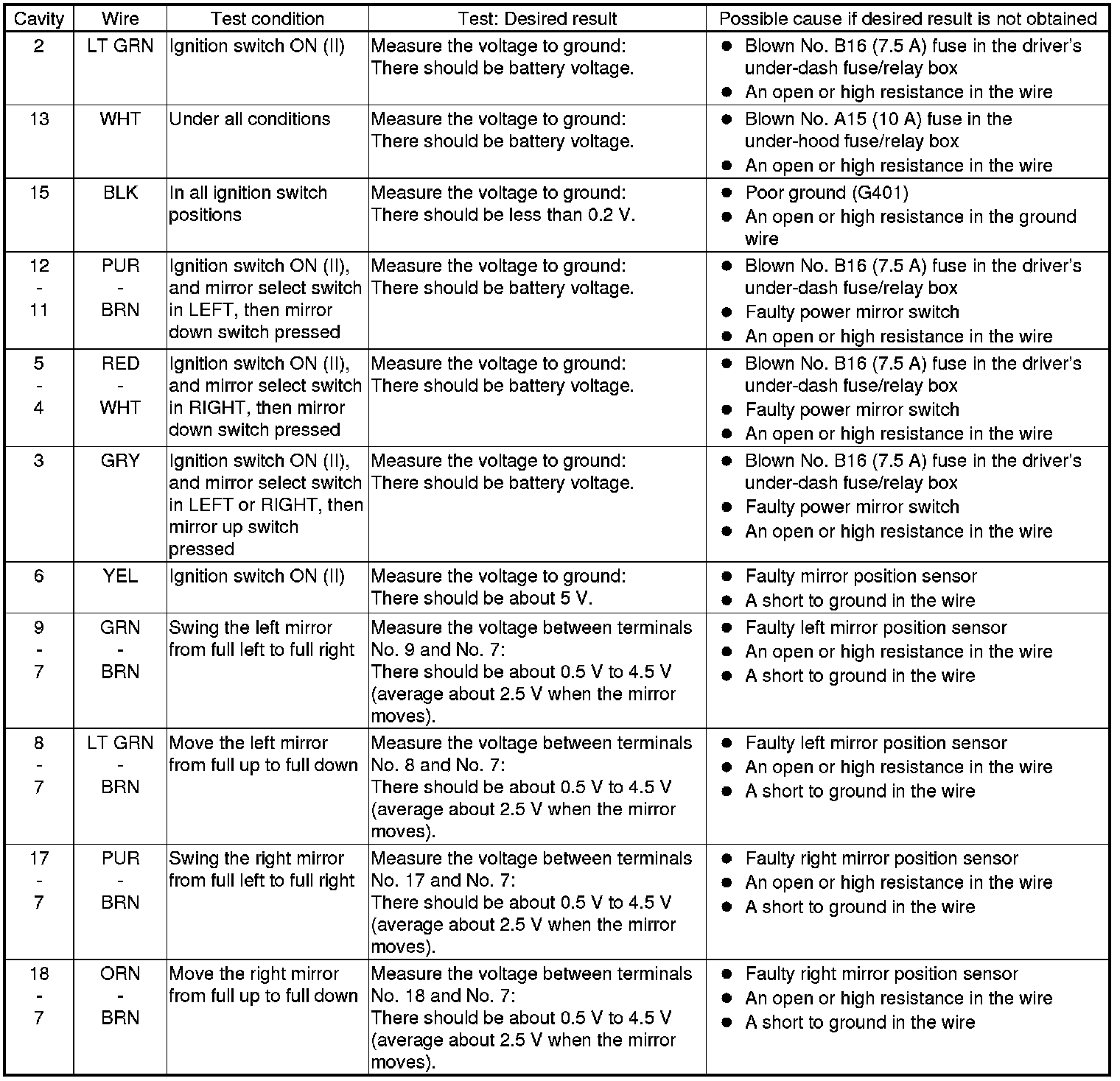 Power Mirror Control Unit Input Test/Replacement