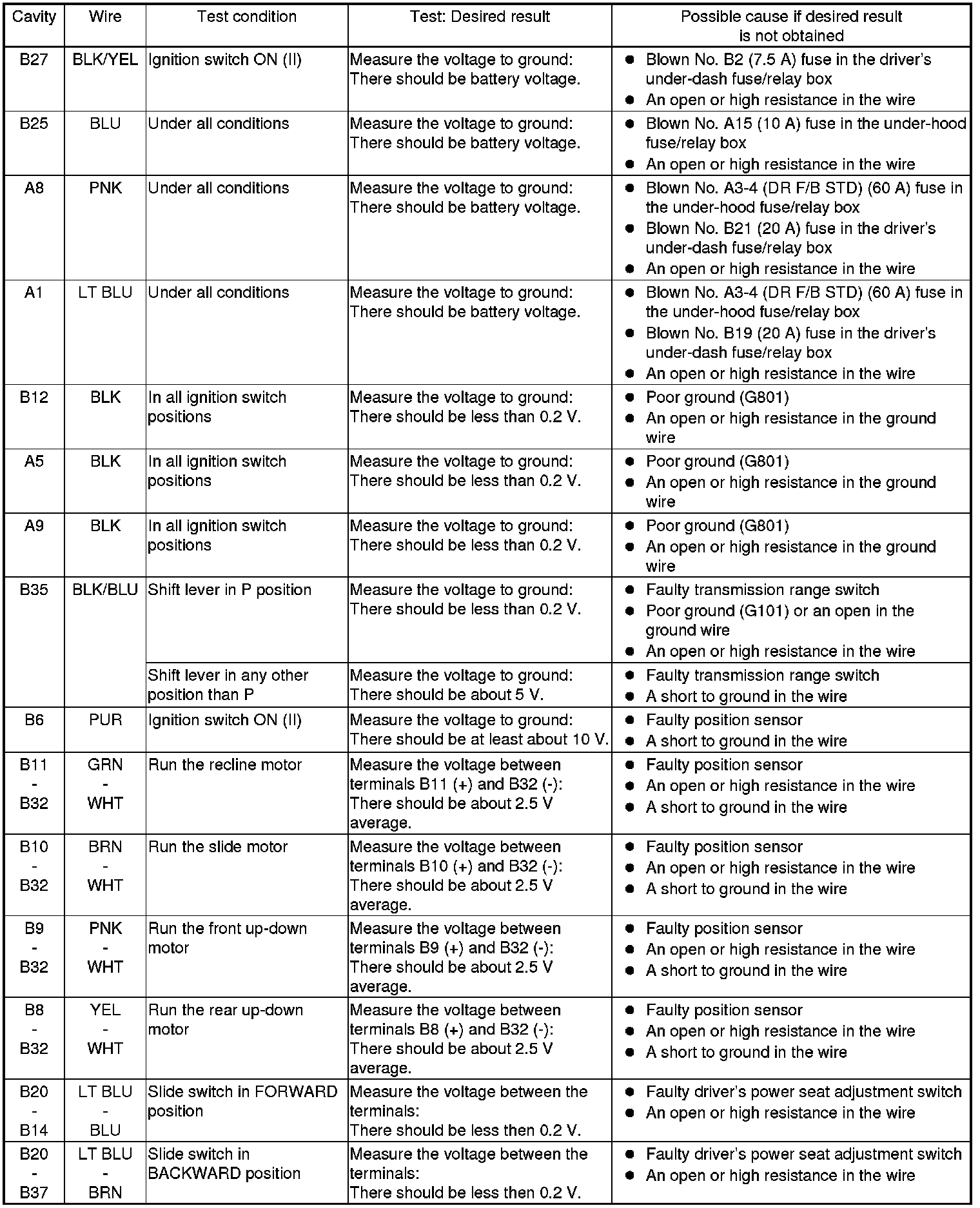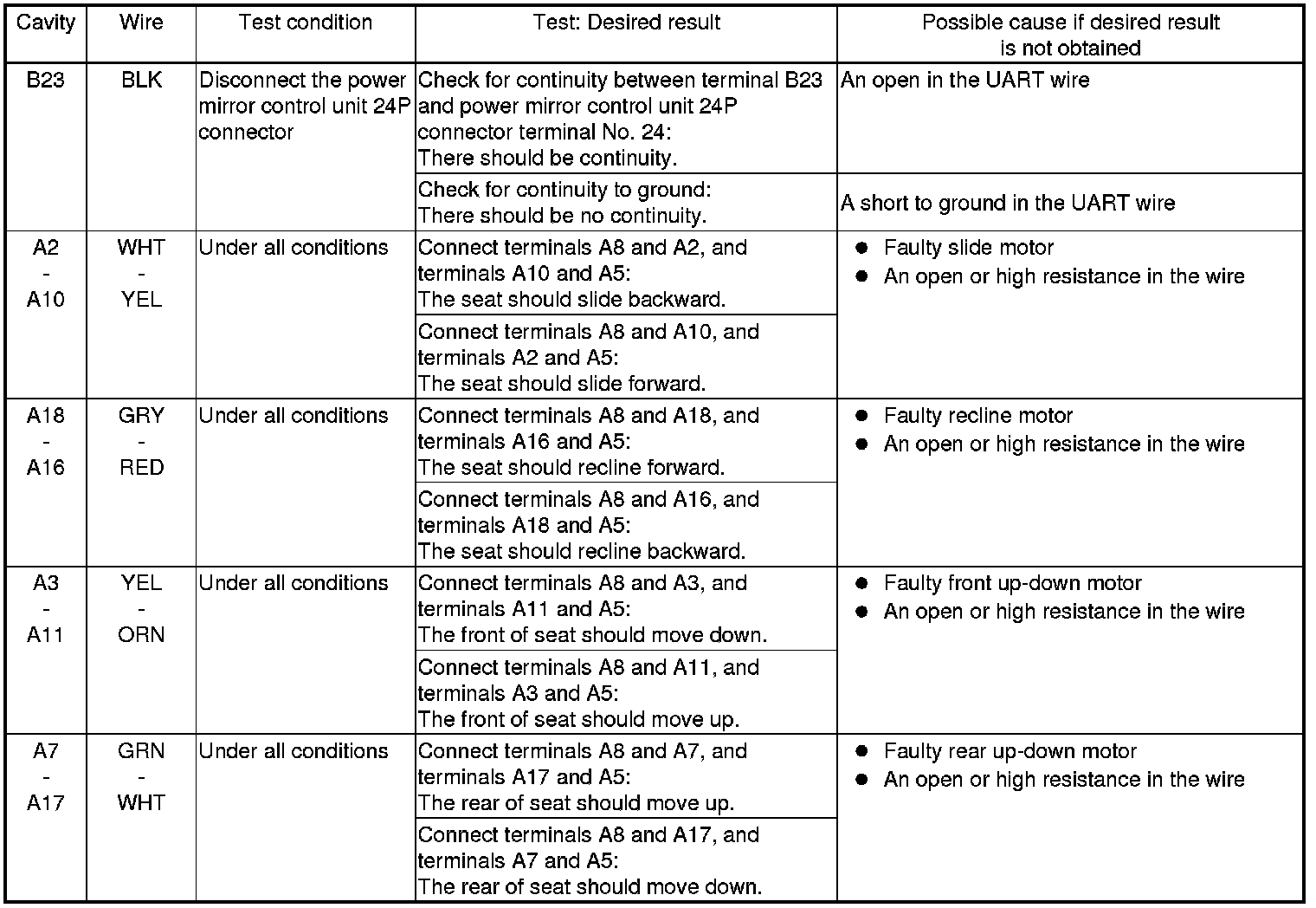 Power Seat Control Unit Input Test/Replacement