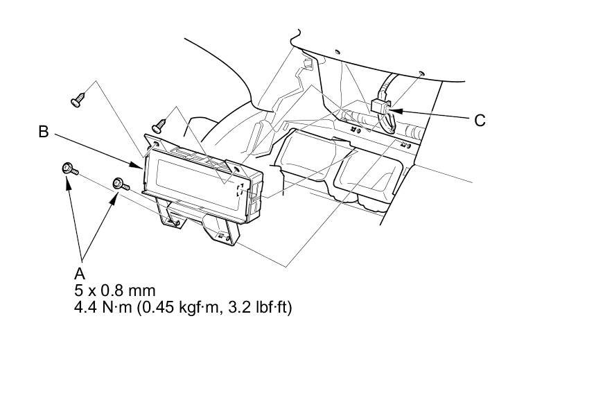 3. Disconnect the connector (C), and remove the audio-HVAC display unit.