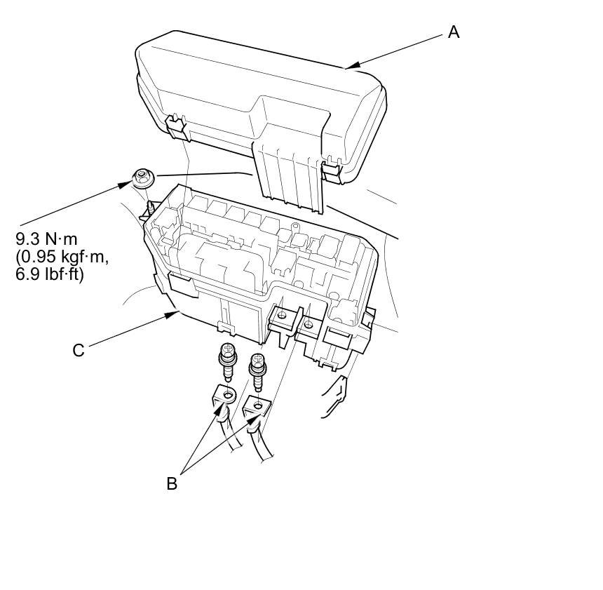 3. Remove the under-hood fuse/relay box (C) from the bracket.