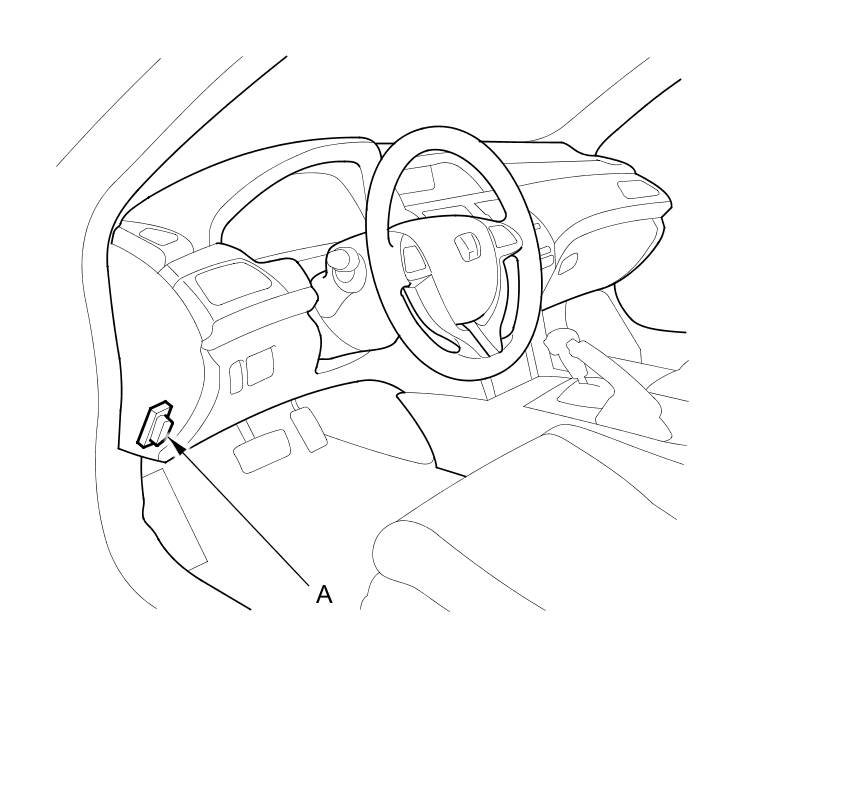 2. Connect the HDS to the data link connector (DLC) (A) located under the driver's side of the dashboard.