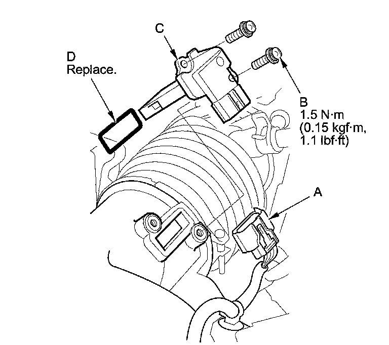 4. Install the parts in the reverse order of removal with a new O-ring (D).