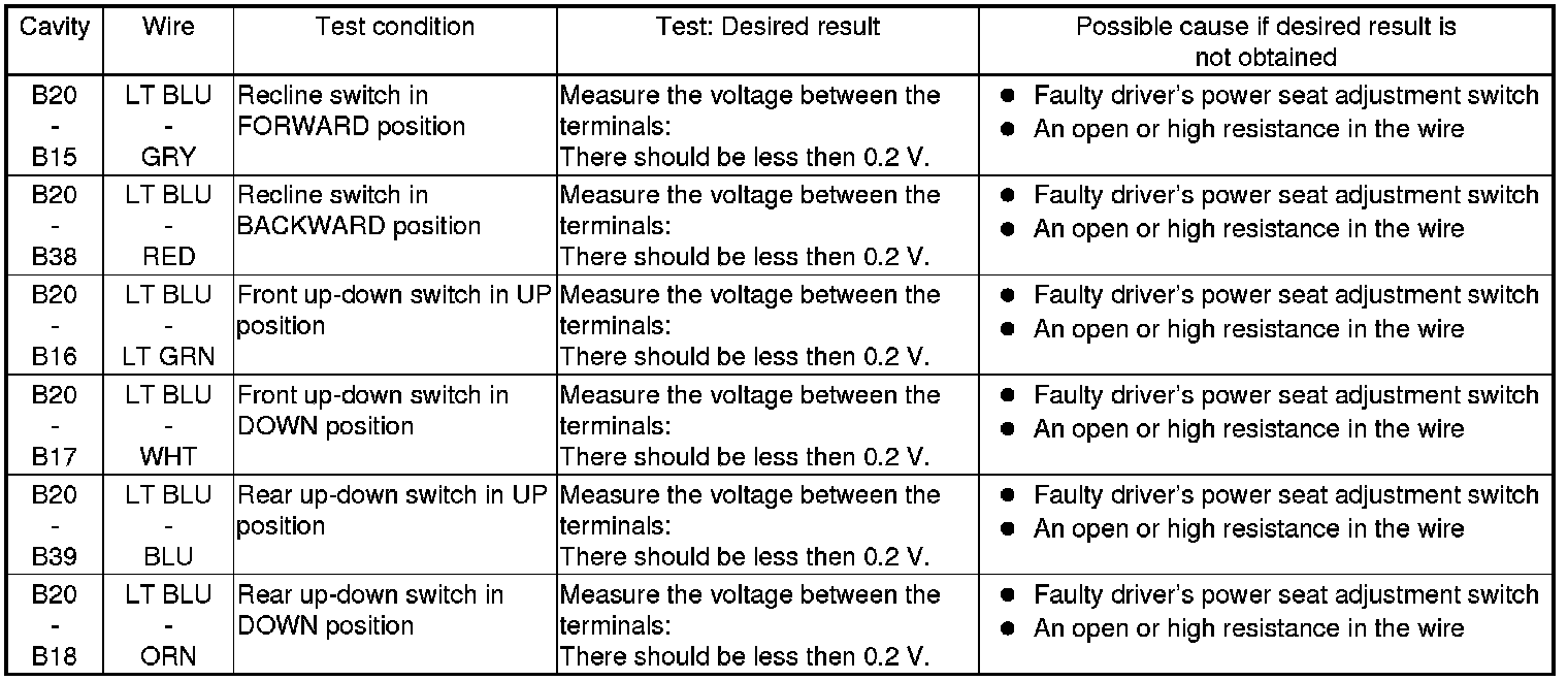 5. Reconnect the connectors to the power seat control unit, and do the following input tests: