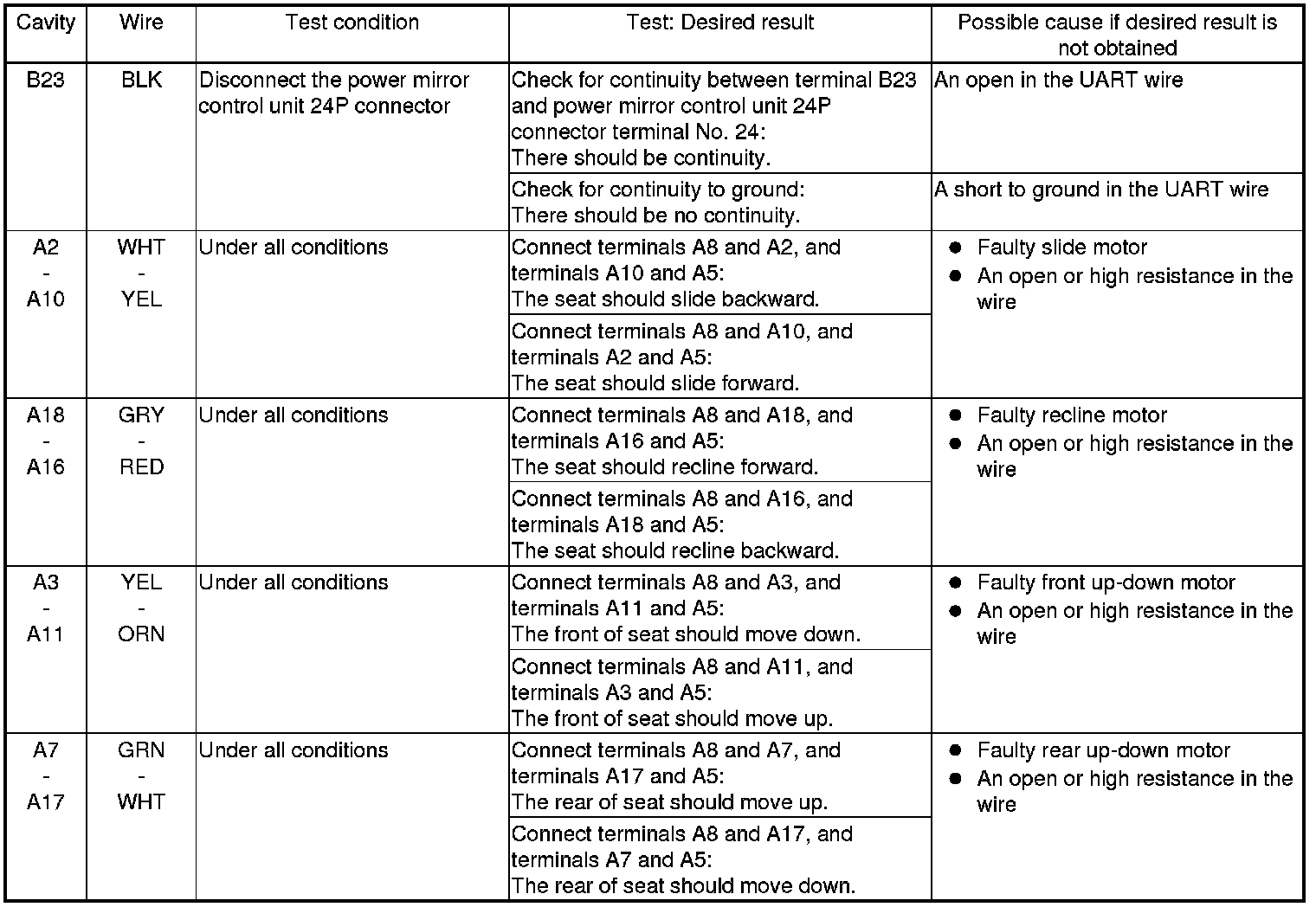 Power Seat Control Unit Input Test/Replacement
